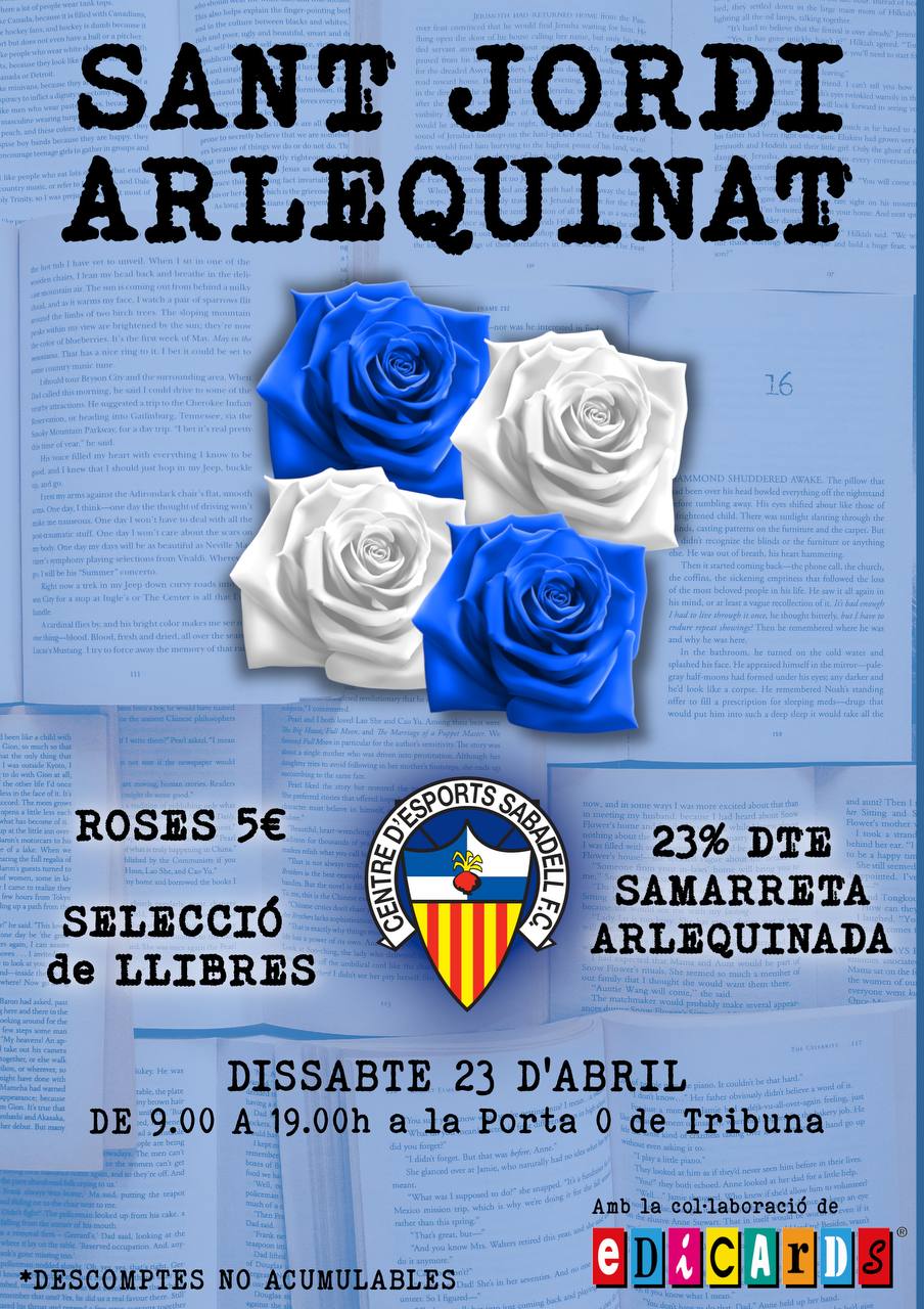 19/04/2022 Celebra la diada de Sant Jordi más arlequinada con el Centre d’Esports Sabadell. Este sábado 23 de abril, el club instalará un punto de
