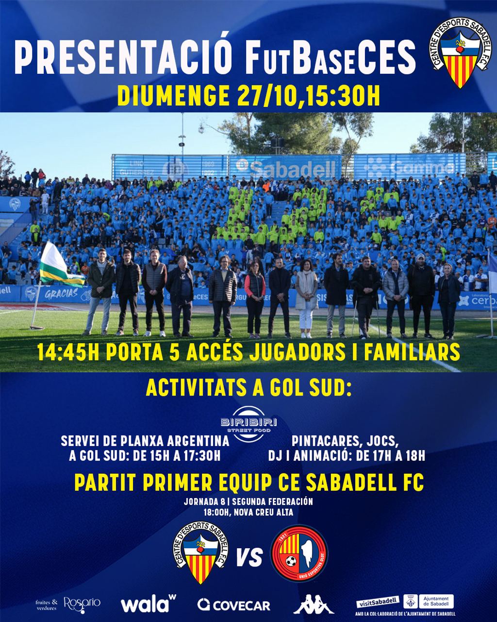 El Centre d’Esports Sabadell presentará su fútbol base el domingo 27 de octubre a las 15:30. Será en la previa del partido ante la UE