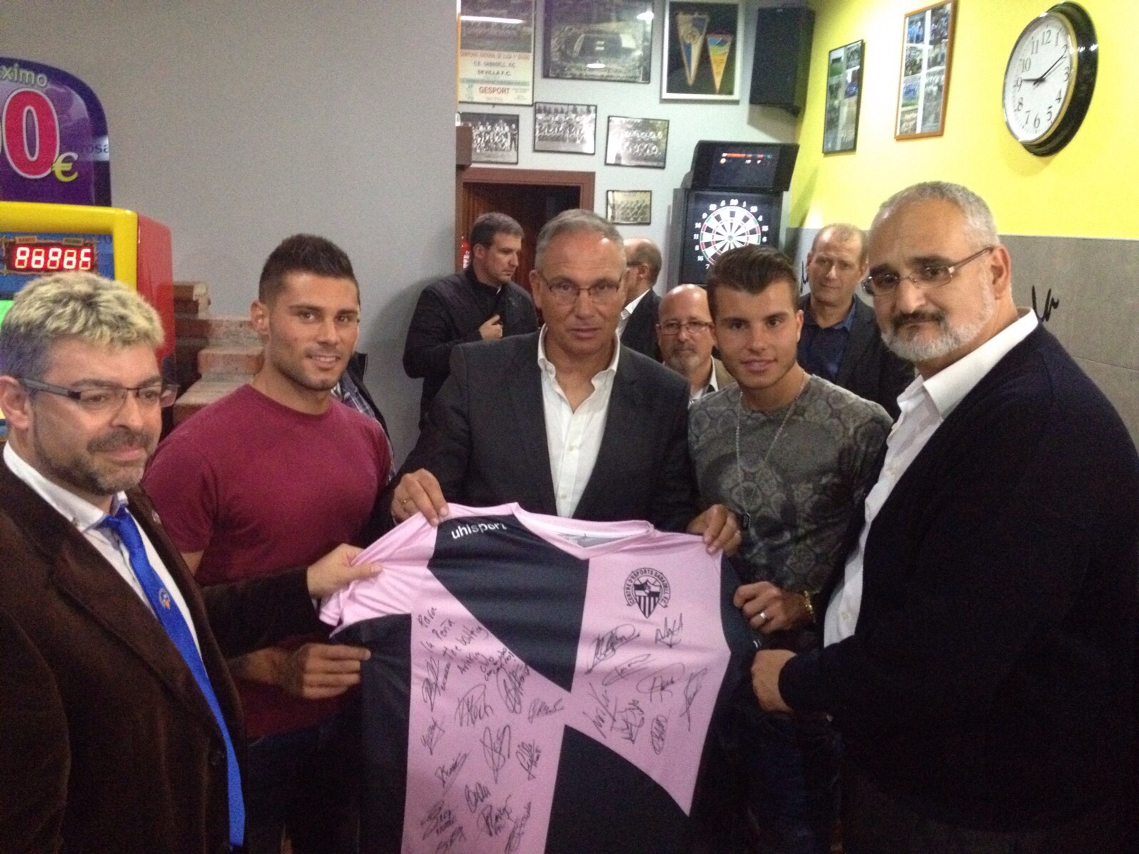 El entrenador Miguel Álvarez y los jugadores Álex Cortell i Pol Roigé estuvieron en la inauguración de la sede de The Walking Arlekin Club