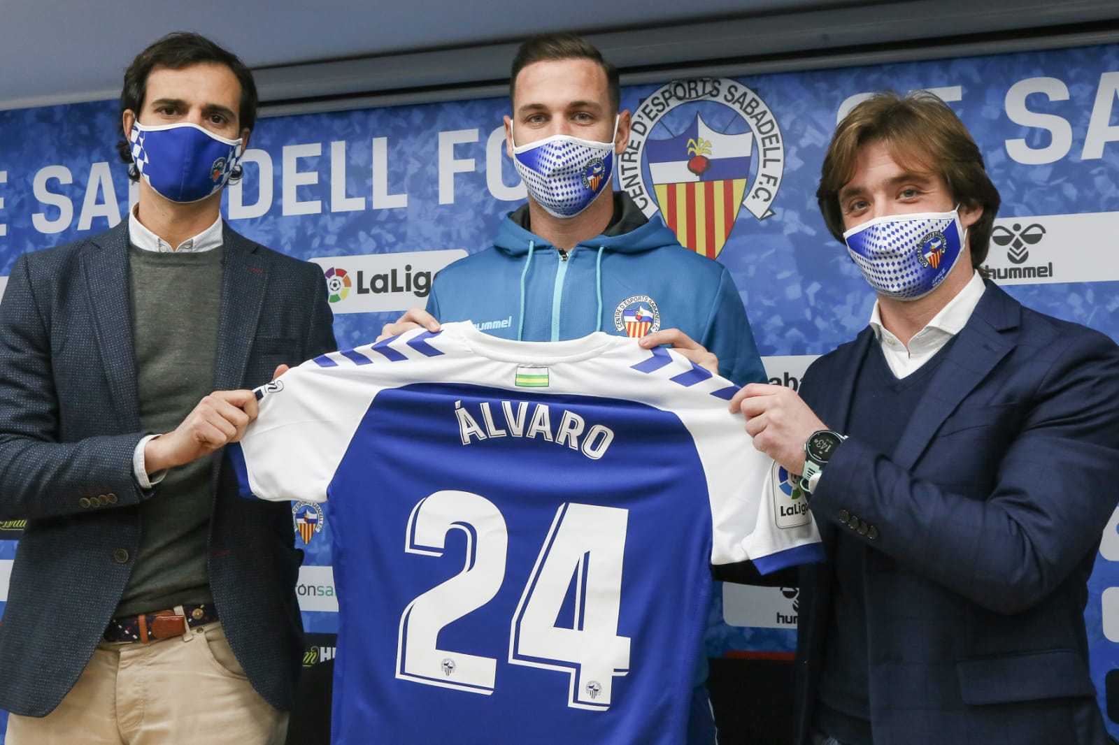El delantero badalonés ha sido presentado oficialmente en el estadio de la Nova Creu Alta
