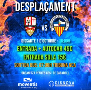 El Centre d’Esports Sabadell disputará el domingo 9 de octubre a las 16:00 horas en el estadio de La Nova Creu Alta ante el Club